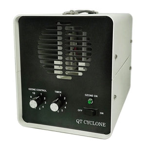 The QT Cyclone ozone generator removes the strongest odors, bacteria, mold, and germs quickly and effectively. It has an adjustable timer and produces varying levels of ozone from 80 mg/hr up to 1,250 mg/hr. It's effective in areas up to 6,000 square feet. You set the ozone level you need and the timer; 15 minutes through continuous run time. When the timer is up, the unit turns off. It's perfect for set & run applications, overnight purification, or where heavy odors, bacteria, or mold are prevalent.