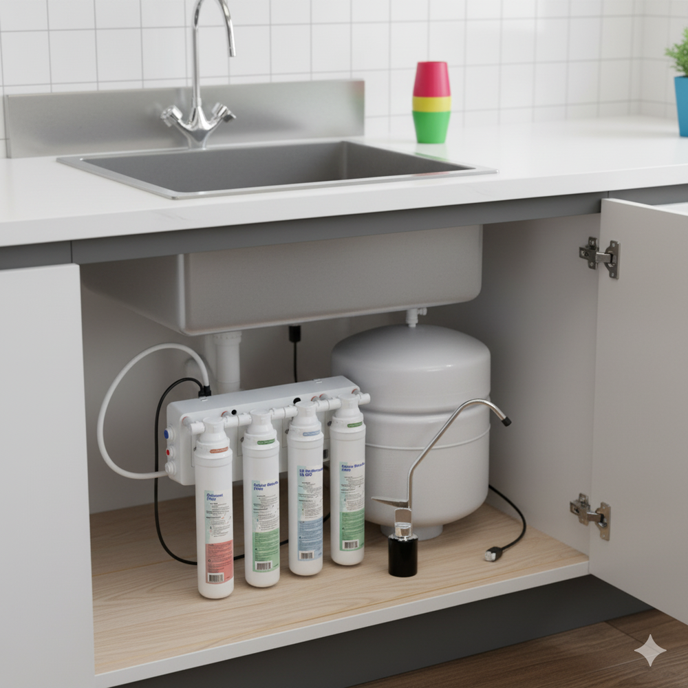 The pH booster cartridge further reduces chlorine, taste, and odor and re-mineralizes the water by raising its pH. This is beneficial for those who want to add mineral taste back to the water after RO purification.
