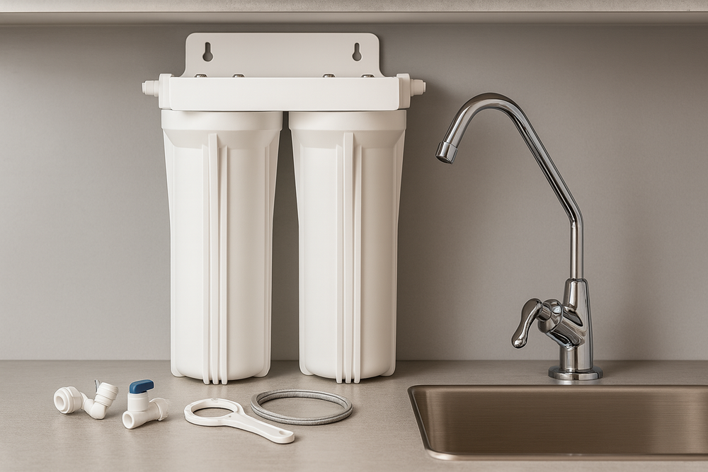 2-Stage Under Counter Water Filter - Available with or without a Chrome Designer Faucet