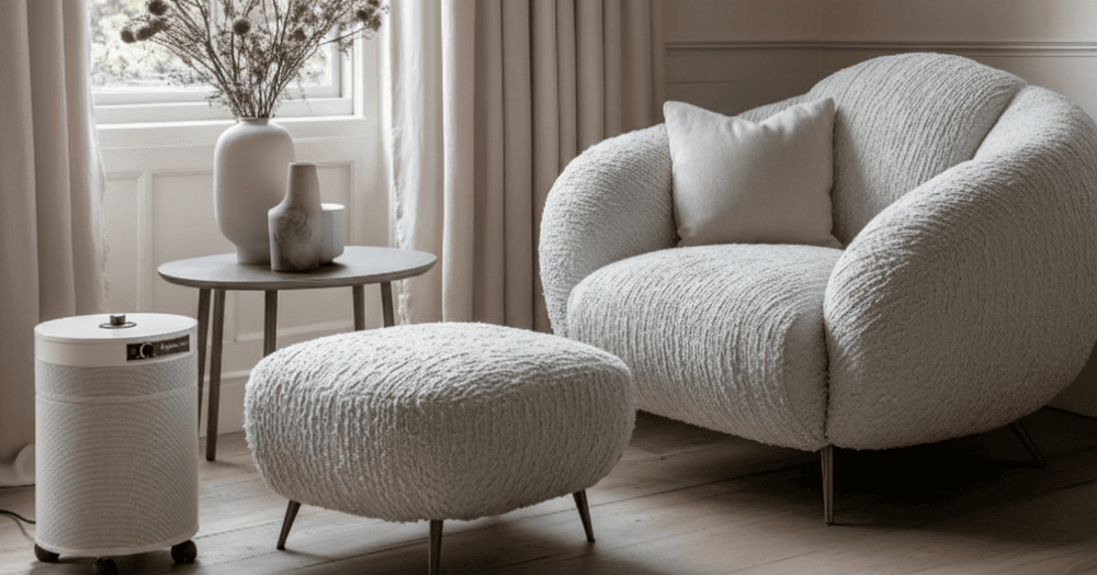 The Airpura F Series helps cut levels of formaldehyde, VOCs, and other chemical smells in homes and workspaces up to 2,000–2,500 sq ft. It uses strong airflow and a deep carbon bed to pull in chemical fumes, plus a True HEPA filter to capture dust and allergens.