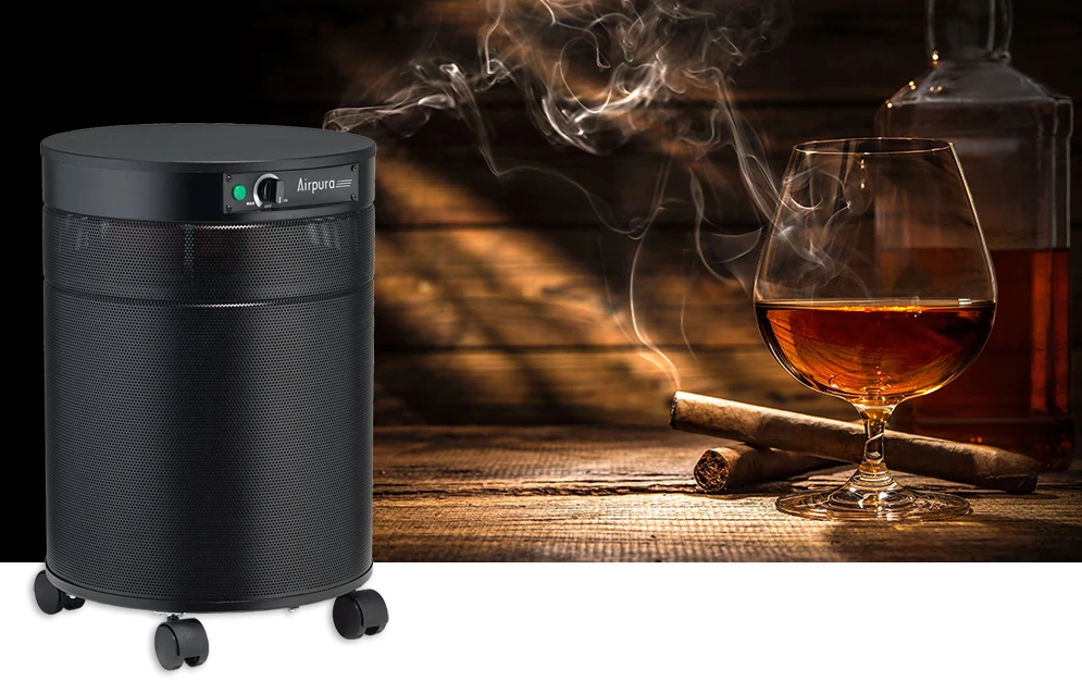 The Airpura T600 and T700 are purpose-built smoke air purifiers designed for heavy, continuous cigarette, cigar, pipe, hookah, and marijuana smoke. Their 3-stage system targets what smoke leaves behind—tars, chemicals, and lingering odors—using a TarBarrier pre-filter, a 26-lb activated carbon bed, and a HEPA-Barrier post filter.