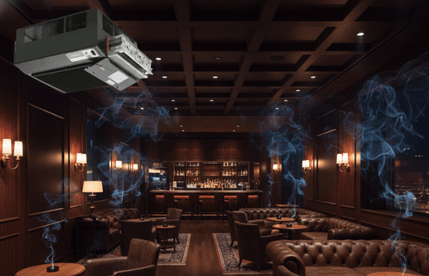 Designed for cloud-chasing vape shops and strip-mall locations where haze builds fast, the C-12-E-Cig clears vapor, reduces residue on surfaces, and keeps the air visibly clean for customers.