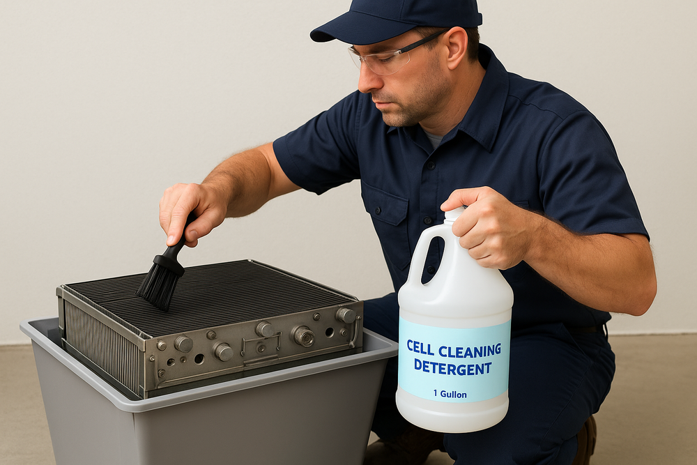 This gallon detergent concentrate is designed to remove dirt, oil, grease and gunk from your electronic cells. Alkaline-based, safe for aluminum.