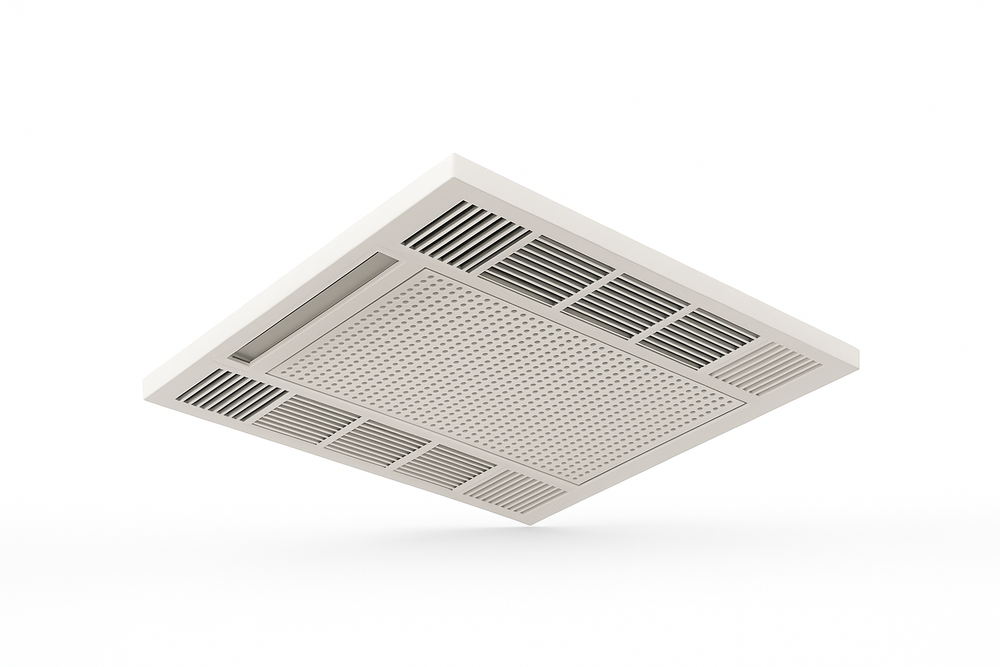 With 175–400 CFM of airflow and a high-efficiency electrostatic cell, the X-400 captures fine airborne particles along with gaseous odors and contaminants. The low-profile grille sits flush with the ceiling, while the cabinet remains hidden above the tile for an unobtrusive, built-in look.